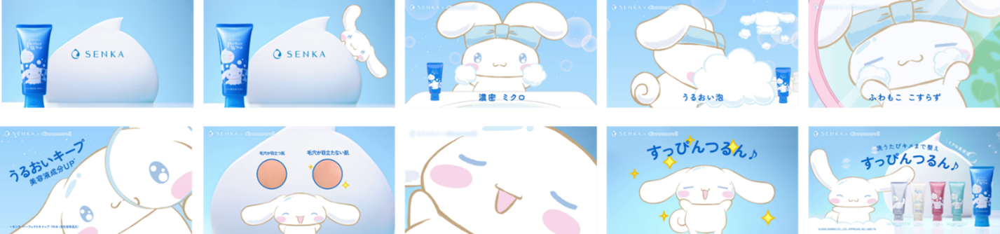 ウェブ動画タイトル:SENKA パーフェクトホイップ webムービー「シナモロールコラボ篇」(15秒)