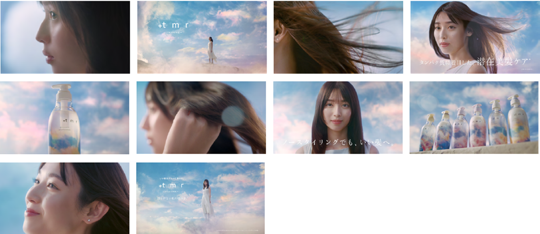 2024年2月の発売以来、一貫して"髪の主成分であるタンパク質に着目した髪の本質ケア"を提案し、生活者の皆さまの今日、そして明日を「髪も、気持ちまでも、少しずつ晴れやかに」できるブランドを目指してきた「+tmr」が、この春お届けするのは、目まぐるしく変化する日常の中で、"ノースタイリングでも、いい髪"という自然体の美しさ。風になびく自然な髪の動き、そして穏やかながらも芯のある表情が印象的な本作では、タンパク質に着目した髪を芯まで整える「潜在美髪ケア※1」を背景に、「+tmr」が提案する"ノースタイリングでも、いい髪"へという価値を象徴的に描いています。